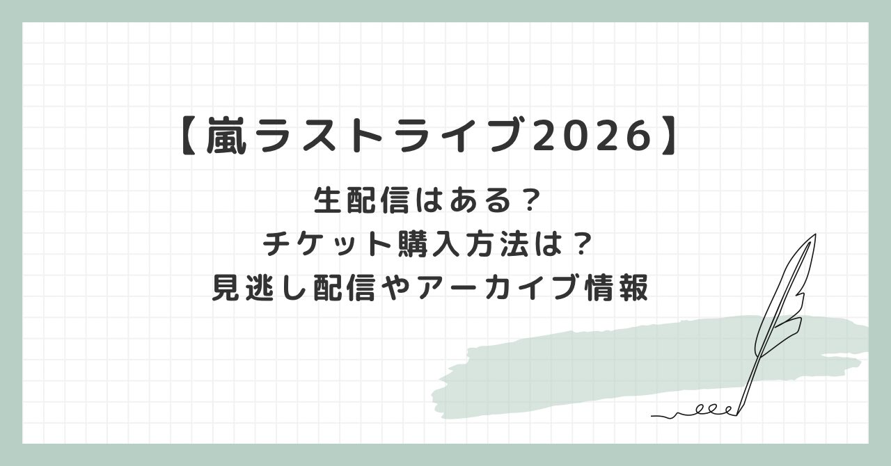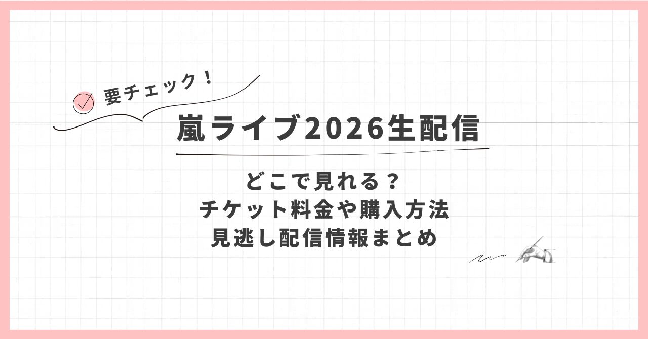 嵐のラストライブツアー【ARASHI LIVE TOUR 2026 「We are ARASHI」】が3月から始まります。 チケットの当落もでて、いよいよですね。 残念ながらチケットの抽選に落選した方 ...