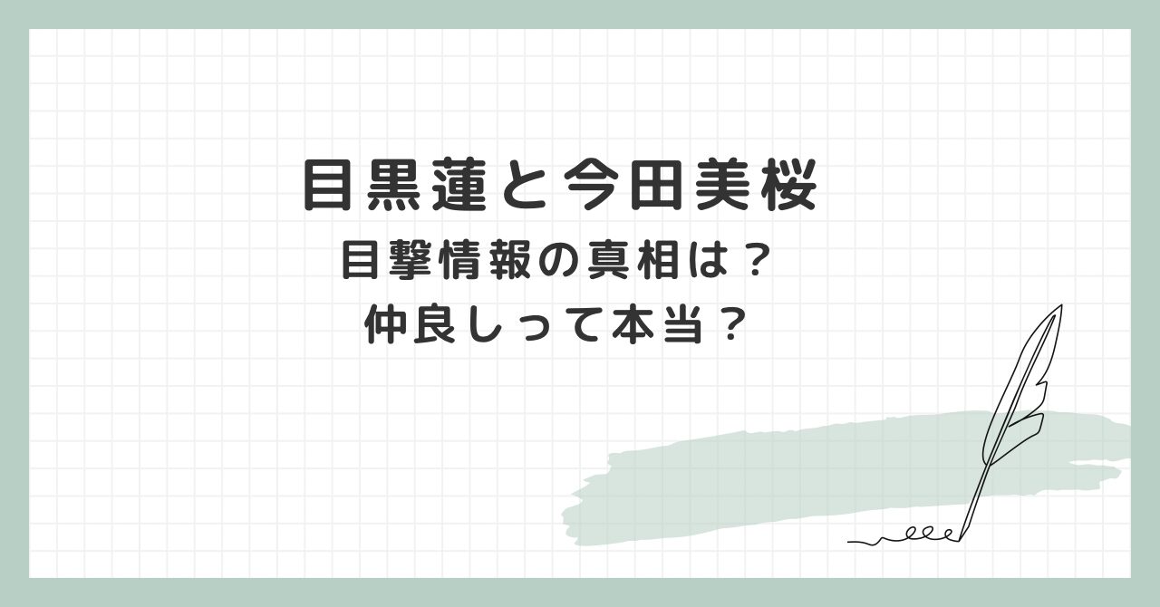 Snow Manの目黒蓮さんと、今最も勢いのある女優・今田美桜さん。 この2人について、「目撃情報があった?」「匂わせしてる?」「実は仲良し?」といった噂がSNSを中心に広がっています。 ドラマや映画 ...