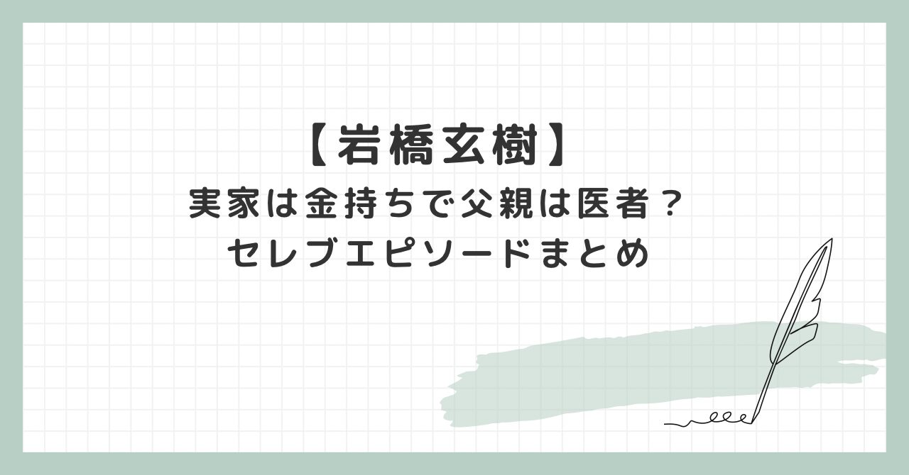 岩橋玄樹の実家は金持ちで父親の病院はどこ?セレブなエピソード4選