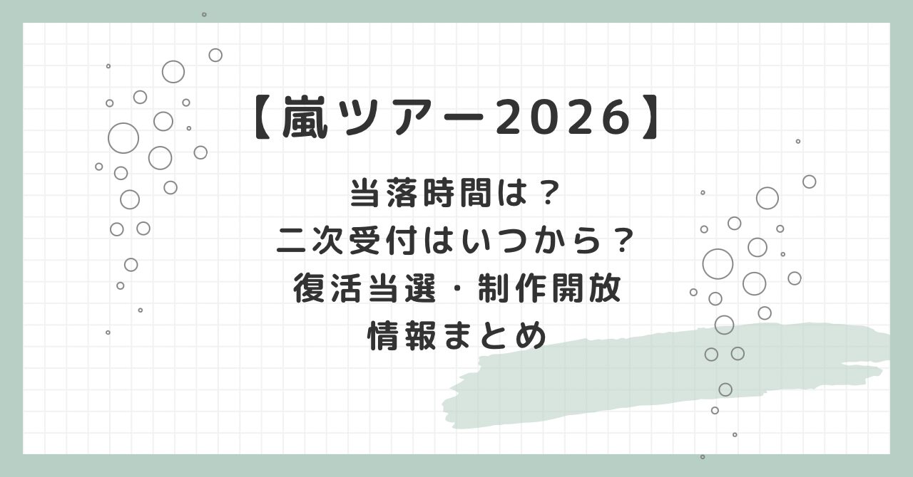 嵐のライブ申し込みを終えたあと、いちばん気になるのが当選。 「当落って何時に出るの?」「まだ結果来ないんだけど…」というところですよね。 しかも今回は、嵐の最後のコンサート、そして数年ぶりということも ...