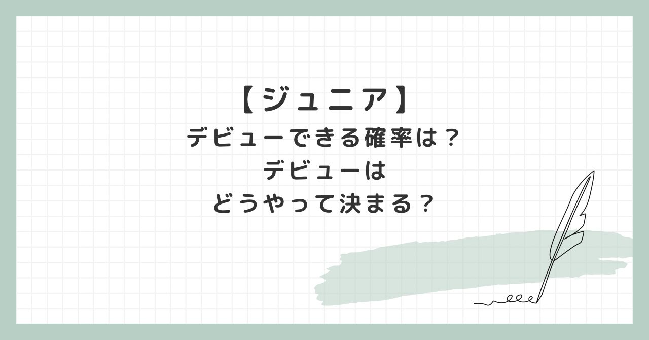 「ジャニーズJr.ってどれくらいの確率でデビューできるの?」「デビューってどうやって決まるの?」 推しがJr.(ジュニア)だと、どうしても気になりますよね。 デビューできるのはほんの一握りと言われます ...