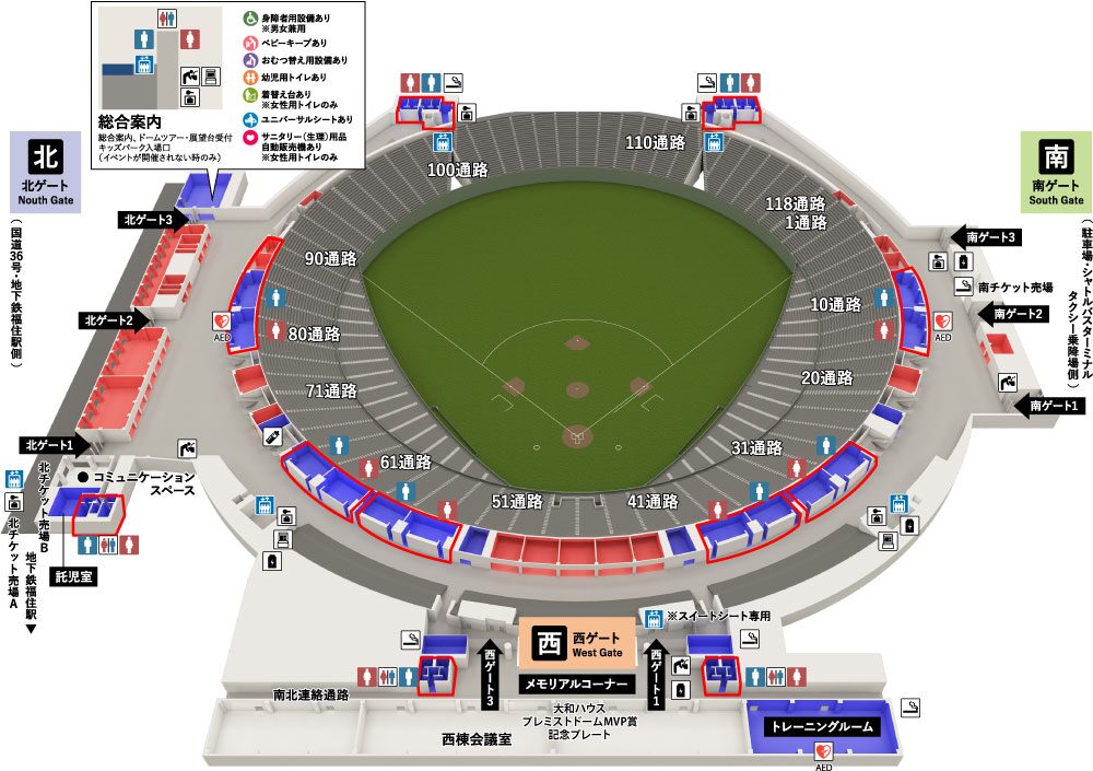 まずは、大和ハウスプレミストドーム(札幌ドーム)公式HPの座席表を参考に、